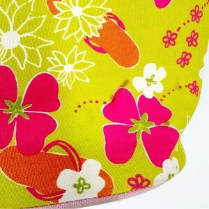 Lilly Pulitzer Vintage Pink/Lime Green Floral Flip Flop Print Canvas Tote Bag