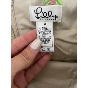 Lilly Pulitzer Scallop Bee Embroidered Mini Skirt Tan Green Pink Size 2