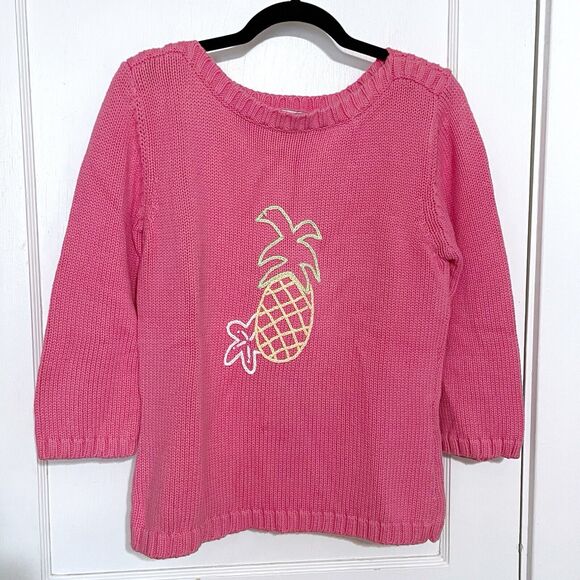 Lilly Pulitzer Vintage Sweater Women’s Large Pink Pineapple Knit 3/4 Sleeve