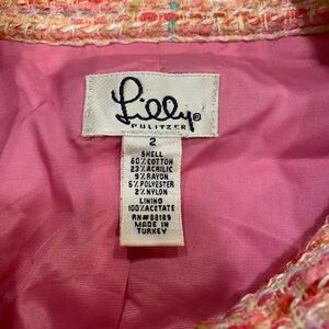 Lilly Pulitzer Vintage Jacket in size 2. Tweed pattern with pink, yellow, and green. Fully lined.