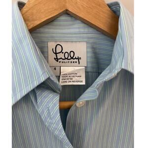 Lilly Pulitzer Vintage White Tag Blue/Green Button-Up Fitted Dress Shirt Size 4