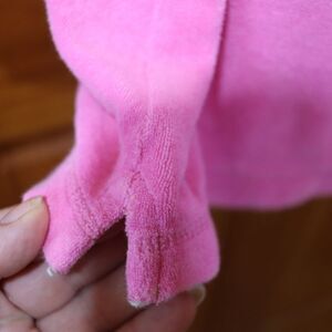 Bring back iconic early 2000s resort vibes with this Lilly Pulitzer pink terrycloth mini skirt. Soft cotton-blend fabric with a hint of stretch captures that luxe-yet-casual beach club feel Lilly is known for. Perfect for tropical getaways, tennis warmups, or poolside coverups, this Y2K-era skirt features a straight mini cut and vibrant color that pairs with tanks, bikinis, or sandals. Made in Turkey — a hallmark of many of Lilly’s early-2000s production runs.