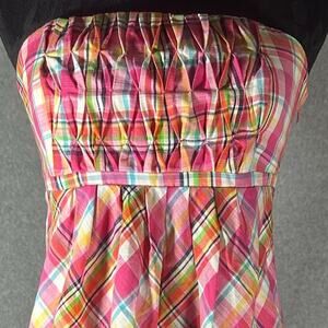 Lilly Pulitzer Vtg 4 Gweneth Madras Plaid Strapless Dress Smocked Coastal Preppy