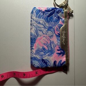 Lilly Pulitzer Wallet Pink Blue Zip ID Case Gold Tone Keychain Card Holder