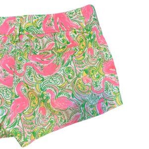 Lilly Pulitzer Walsh Flamingo Print Shorts Size 2 Green & Pink Paisley Cotton Wo