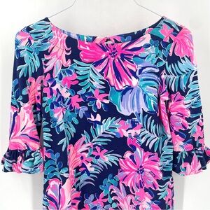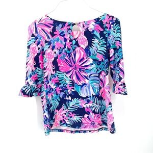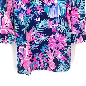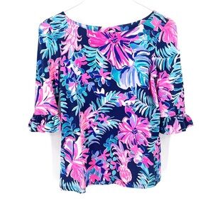 Lilly Pulitzer Waverly Ruffle Multi Garden Get Away Navy Pink Casual Blouse Top