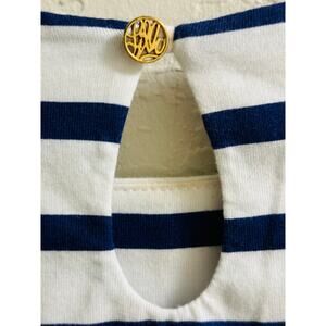 The Waverly Top has a boatneck and a rounded keyhole in the back. Pair it with solid shorts and you are good to go 100% Supima Cotton