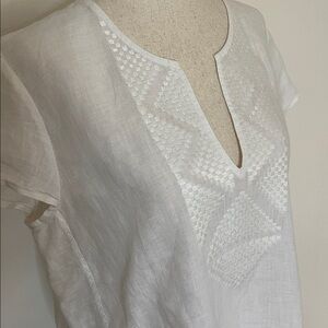 Lilly Pulitzer White 100% Linen Breakers Top Size Small | V-Neck Embroidered