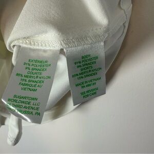 Stay comfortable and stylish with these white athletic shorts. Perfect for any workout or casual day out. Built-in shorts underneath. It looks like a skort when it’s on.