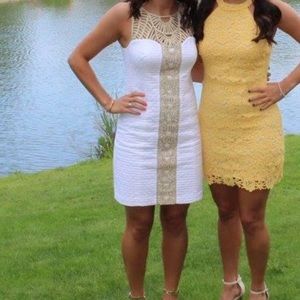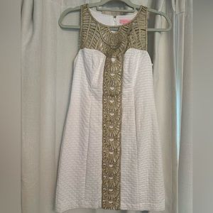 Lilly Pulitzer white and gold shift dress. Worn once, excellent condition. Would be the perfect bridal or graduation dress! Received so many compliments on this