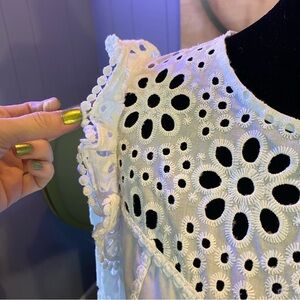 Lilly Pulitzer Classic White Eyelet Embroidery Ruffle Trim Summer Boho Fun Top