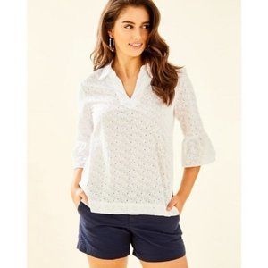 Lilly Pulitzer Ginger Top Resort White Fishy Eyelet Size S. Beautiful top.