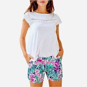 Lilly Pulitzer White Florabelle Knit Embroidery Flutter Sleeve Top Size Medium