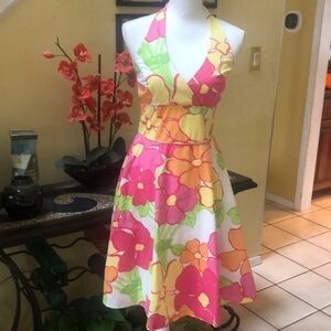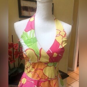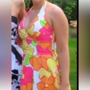 Lilly Pulitzer White Label Vintage Floral Midi Length Halter Tie A line Dress 4…