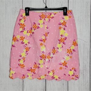 Lilly Pulitzer White Label Y2K Pink Floral Summer Skirt with Scalloped Hem, sz 6