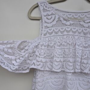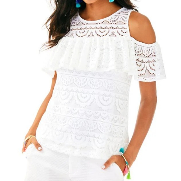 Lilly Pulitzer White Lace Cold Shoulder Ruffle Top Women’s L