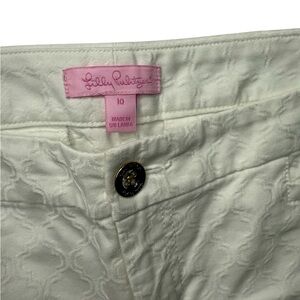 Lilly Pulitzer White Moroccan Print White Cropped Pants Size 10. Stylish white cropped pants.