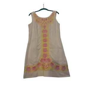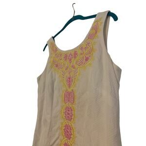 Lilly Pulitzer White Pink Yellow Delia Mini Shift Dress Sleeveless Sz 10 N