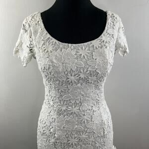 Lilly Pulitzer White Sheath Dress Cotton Floral Lace Scoop Neck Back Zip Size 2