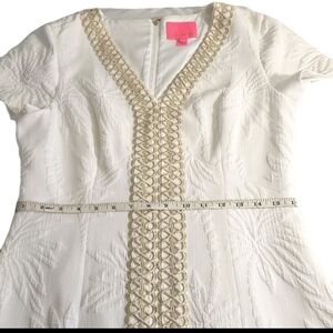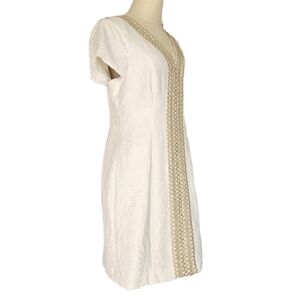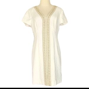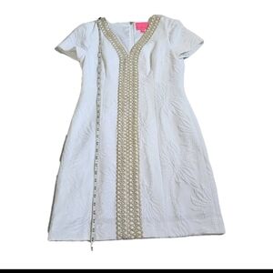 Lilly Pulitzer White and Gold Arie Stretch Short Minimal Luxury Shift Dress SZ 8