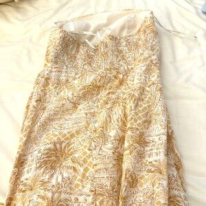 Lilly Pulitzer White and Gold Midi Dress Palm Tree Print
