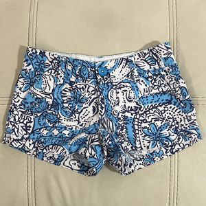Lilly Pulitzer White/Blue Pattern The Walsh Shorts Size: 000