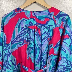 Lilly Pulitzer Wilda Caftan Dress Size Small Pink Sway Beaded Tropical Vacation