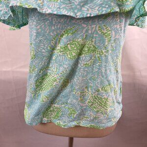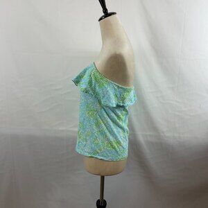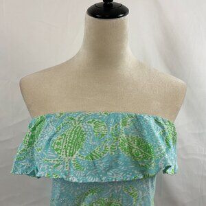 Lilly Pulitzer Wiley Ruffle Top S Blue Green White Print Strapless