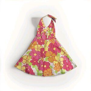 Lilly Pulitzer Willa Halter Top Dress Sz 8 Pink Bright Floral A Line Sundress