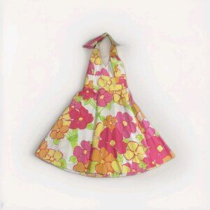 This stunning Lilly Pulitzer halter sundress features a bold, tropical floral print in pink, orange, yellow, and green ๐บ Made from 100% cotton with a flattering halter neckline, fitted waist, and flared skirt โ the perfect summer party, vacation, or brunch dress!