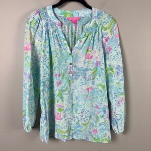 Lilly Pulitzer Willa ‘postcards from Positano” 100% silk peasant tunic top