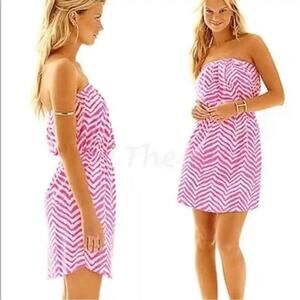 Lilly Pulitzer Windsor Spring Dress Zebron Strapless chevron Above Knee Mini XS