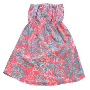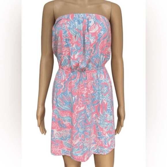 Lilly Pulitzer Windsor Summer Siren Pink Sun Ray Seashell Strapless Dress SMALL