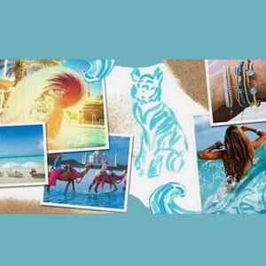 • Color: Shades of blue & white with a tropical, ocean-inspired design