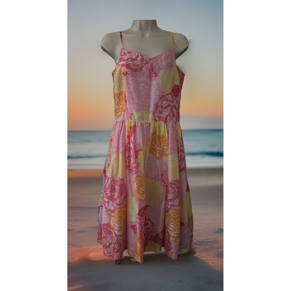 Vtg Lilly Pulitzer Winners Circle Pink Floral White Label Sleeveless Sundress Silk 8