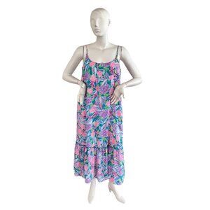 Lilly Pulitzer Winni Midi Dress Maldives Green Turtle Tiered Ruffle
