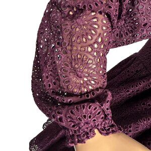 The Lilly Pulitzer Winona eyelet dress in Cherry Ganache size S is a stylish and versatile choice for various occasions. With a solid pattern, long balloon sleeves, and a V-neckline, this short dress is perfect for travel, weddings, parties, casual outings, or even business events. The eyelet detailing, layered accents, and hook & eye closure add a touch of elegance to the dress. Made from a blend of polyester and cotton, this Lilly Pulitzer dress is both lined and designed for a comfortable and chic look.