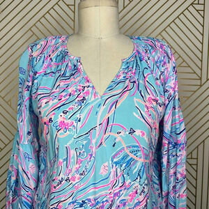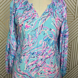 Lilly Pulitzer Winsley Top In Lapis Lazuli Horseshoe Bay Blue Pink Size US XS