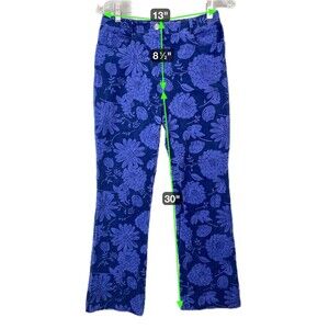 Lilly Pulitzer Women 26 Pants Micro Corduroy Blue Floral Straight Preppy READ