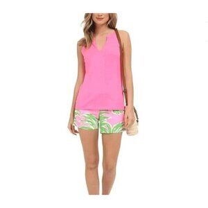 Lilly Pulitzer Women Arya Tank Top Cotton Blend Short Sleeve Pink Size Medium