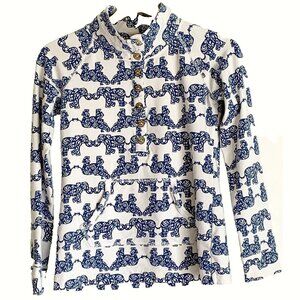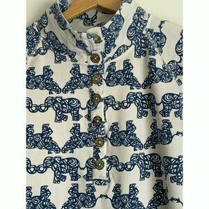 Lilly Pulitzer Women CAPTAIN PRINT Top XS White Navy Pack Your Trunk Elephant