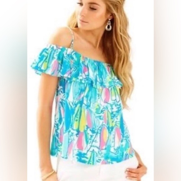 Lilly Pulitzer Women Tamiami Off-the-Shoulder Top Medium Ruffle EUC Resortwear