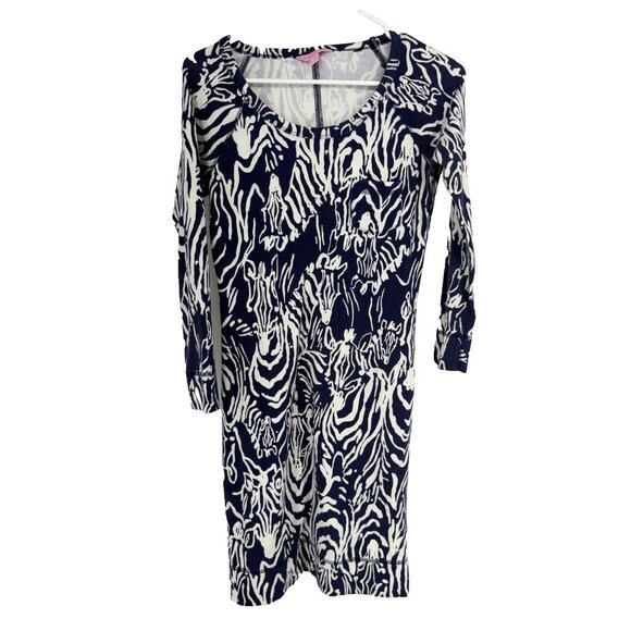 Lilly Pulitzer Women XS Preston French Terry Dress Mini Zebra Print Navy Blue