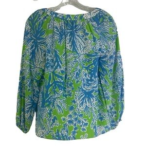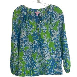 Lilly Pulitzer Women XSmall Elsa Top Biggest Fan 100% Silk Seahorse Coral READ