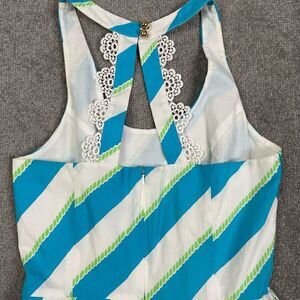 Lilly Pulitzer Womens 2 XS Blue Green Stripe Mini Dress Halter Nautical Summer