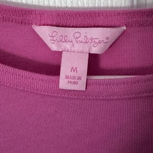 Lilly Pulitzer Womens 3/4 Sleeve Shirt Crewneck Gold Button Logo Pepto Pink Med