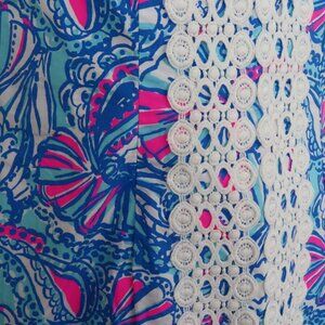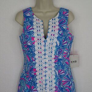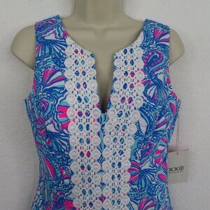 Lilly Pulitzer Womens 4 MY FANS Blue Pink White Shift Dress Target Collab NEW