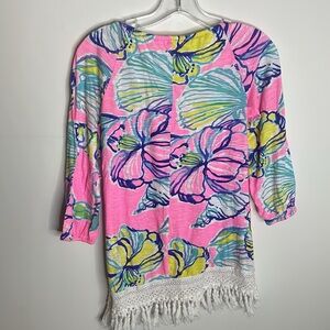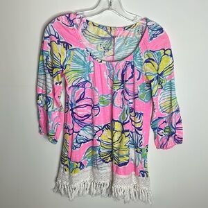 Lilly‎ Pulitzer Womens Alia Top Shirt Fringe Multicolor Pink Seashell Size XS