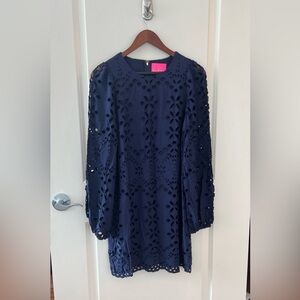 LILLY PULITZER ALYNA LONG SLEEVE EYELET DRESS TRUE NAVY SOIREE EYELET