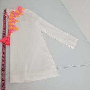 Stylish Lilly Pulitzer Amelia Island Tunic Top in white. Size S, crafted from comfortable cotton with intricate embroidery and tassel details. Perfect for beach outings.